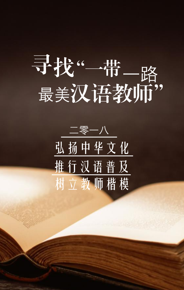 為進一步弘揚中國漢語文字推廣普及文化教育理論傳播,推進漢語教學科學和諧發(fā)展,營造師生默契配合的濃厚學術氛圍,促進學風建設,同時也為了給教師提供一個展示自我的平臺,現(xiàn)決定在一帶一路沿線國家開展2018年尋找“一帶一路最美漢語教師”評選活動。