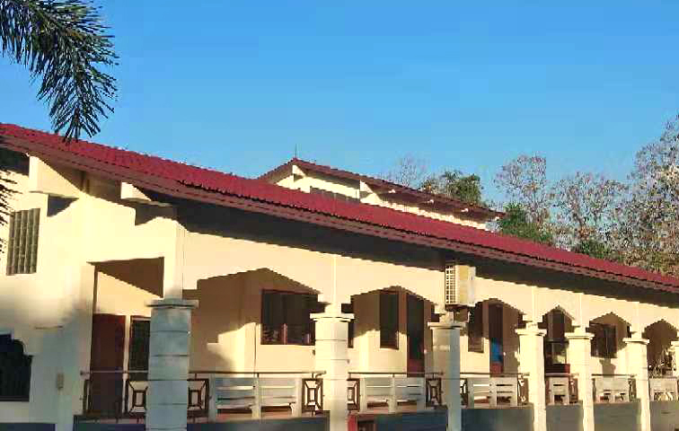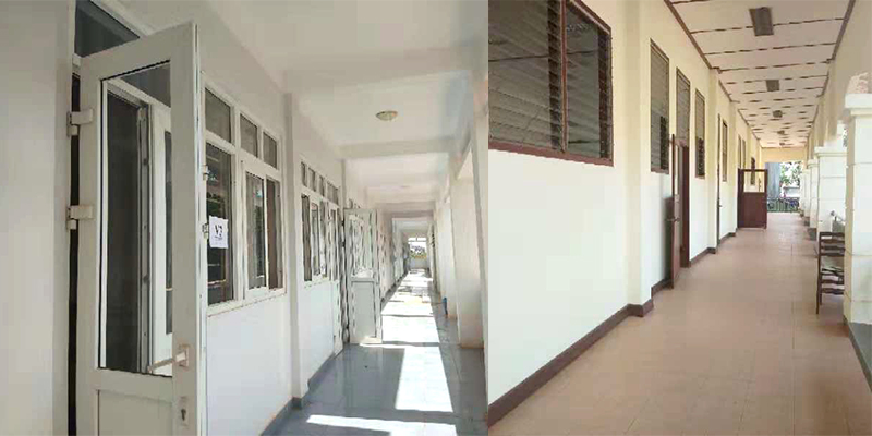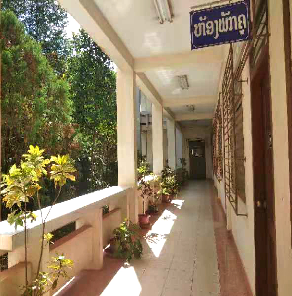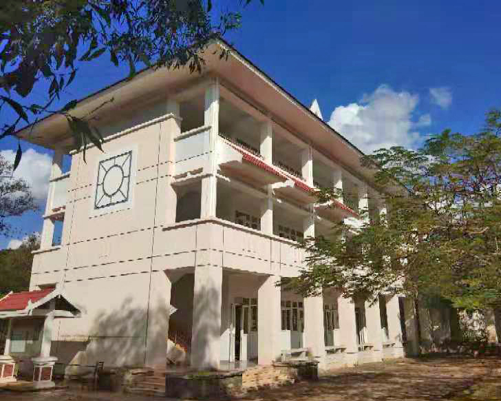 這是我上課的教學(xué)樓——語言學(xué)院,遵循著“看人先看臉”的原則,我們先看一下它的外在環(huán)境。看過前幾期介紹的小伙伴不難發(fā)現(xiàn),老撾國立大學(xué)的教學(xué)樓基本都是紅頂白墻,活潑跳躍的顏色彰顯著這所學(xué)校的朝氣。