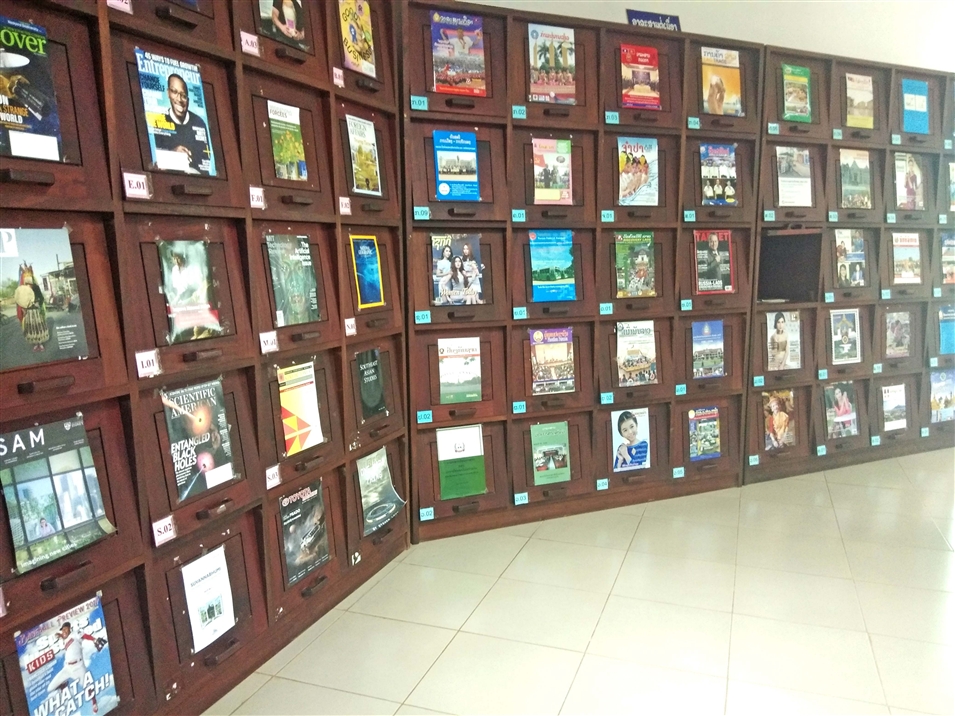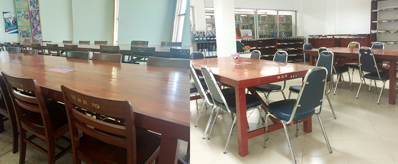 之前我們說老撾國立大學(xué)“低調(diào)奢華有內(nèi)涵”,教室和食堂桌椅是實木的,進(jìn)入圖書館之后,發(fā)現(xiàn)閱讀處的桌子也是實木的...不愧是木材資源豐富的國家。