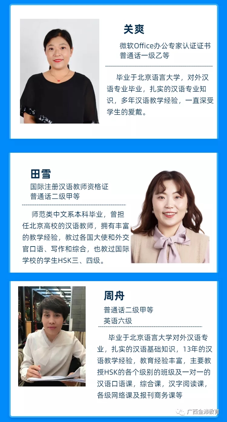 學(xué)習(xí)漢語(yǔ)找金沛,金沛漢語(yǔ)學(xué)院擁有雄厚師資力量和優(yōu)秀的教師團(tuán)隊(duì),中國(guó)名校名師在線課堂,扎實(shí)的專(zhuān)業(yè)知識(shí)、漢語(yǔ)考試技巧、方向,根據(jù)學(xué)生目標(biāo),制定適合的教學(xué)計(jì)劃,助你順利過(guò)關(guān)!