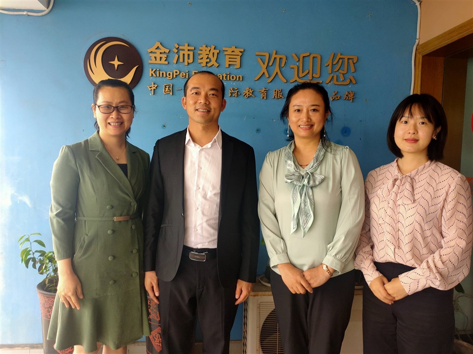 (左一廣西金沛教育校長張金雪女士、左二廣西金沛教育執(zhí)行董事粟宥朝先生、右二北京師范大學一帶一路學院陳健博士、北京師范大學一帶一路學院李邵悅老師)