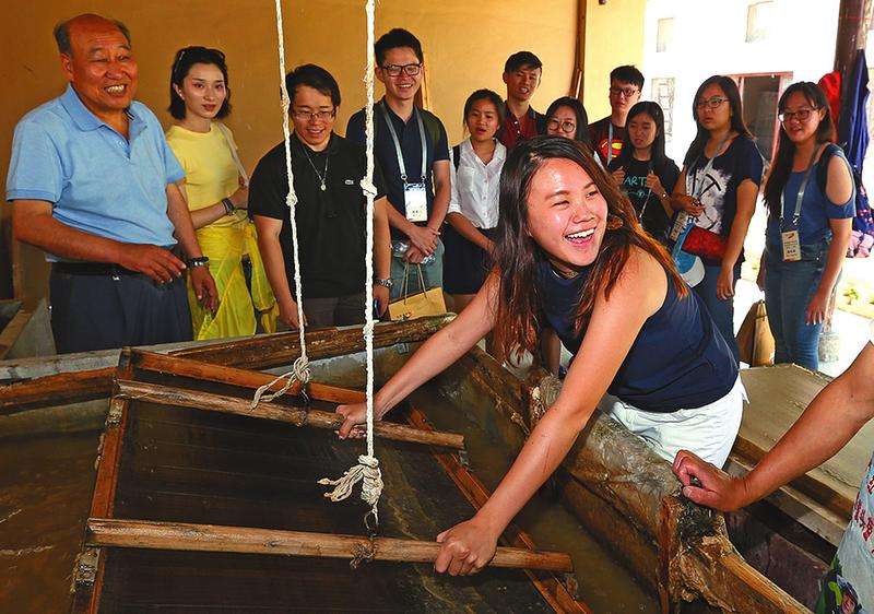 6月12日,在陜西省西安市起良蔡侯紙博物館,13位來自新加坡的青年朋友在工匠的指導(dǎo)下,學(xué)習(xí)體驗古法造紙技術(shù),感受中國傳統(tǒng)文化的魅力。