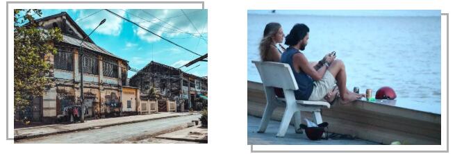 走在貢布市街頭,隨處可見的法式建筑,會(huì)使你有一種誤入上世紀(jì)法國的時(shí)空錯(cuò)落感,但市場(chǎng)內(nèi)充滿著的濃濃東南亞氣息,又會(huì)將你拉回到了現(xiàn)實(shí)當(dāng)中。貢布曾是法屬殖民地,如今成為了法國人精心修飾過的浪漫度假小鎮(zhèn)。每天圍坐在河邊的酒吧里看著落日吹風(fēng),偶爾有些游客要了一瓶啤酒,便在河邊坐上一天。時(shí)間在這里仿佛不再流逝,你可以就這樣悠閑地享受貢布小城里慵懶的午后時(shí)光。