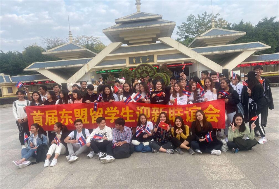 圖為東盟留學(xué)生于青秀山大門(mén)前合影