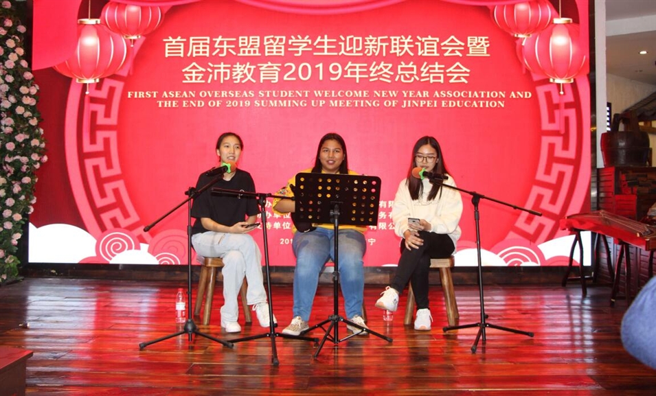 12月14日,由廣西金沛教育主辦的“首屆東盟留學(xué)生迎新聯(lián)誼會(huì)暨金沛教育2019年終總結(jié)會(huì)”在南寧舉行,此次聯(lián)誼會(huì)分兩個(gè)部分組成,下午,金沛教育帶領(lǐng)東盟留學(xué)生游覽南寧青秀山風(fēng)景區(qū),參觀東盟友誼長(zhǎng)廊,在大草坪進(jìn)行互動(dòng)游戲交流,晚上,東盟各國(guó)駐南寧使館外交官和東盟留學(xué)生一起歡聚一堂,載歌載舞。