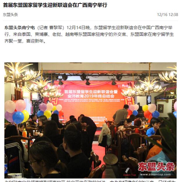 此次“首屆東盟留學(xué)生迎新聯(lián)誼會(huì)”得到東盟相關(guān)主流媒體的關(guān)注和報(bào)道,引起了東盟留學(xué)生的熱烈反響,這將為我們進(jìn)一步開(kāi)展中國(guó)-東盟國(guó)際教育合作發(fā)展提供強(qiáng)有力的媒體支持。