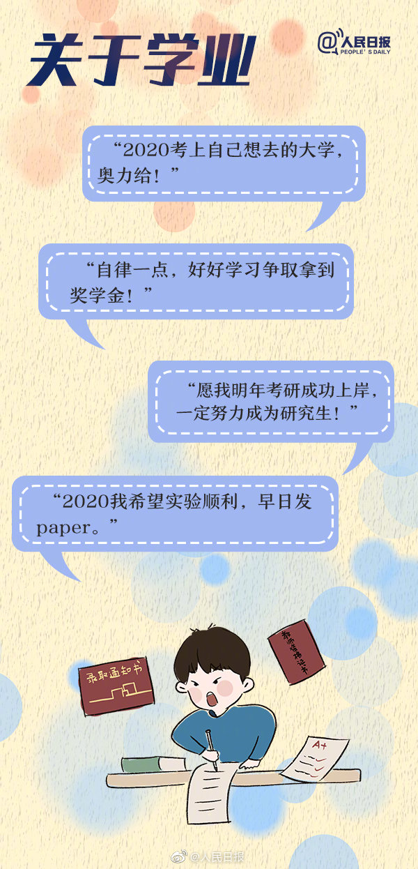 2020啦!你的2020心愿清單都有什么?2019過去,2020正在迎接你的到來。“考上自己想去的大學”、“擁有一份令人心動的offer”、“要和阿中哥哥一起越來越好”…關于家人、關于學業(yè)、關于熱愛、關于成長,網友們的2020心愿↓↓這里有你的嗎?轉發(fā),許下新年愿望吧!
