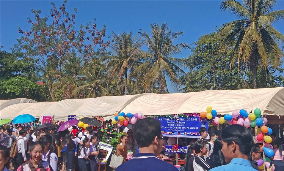 2018年12月26日上午,老撾國立大學(xué)文學(xué)院美食活動正式開始,現(xiàn)場人山人海。