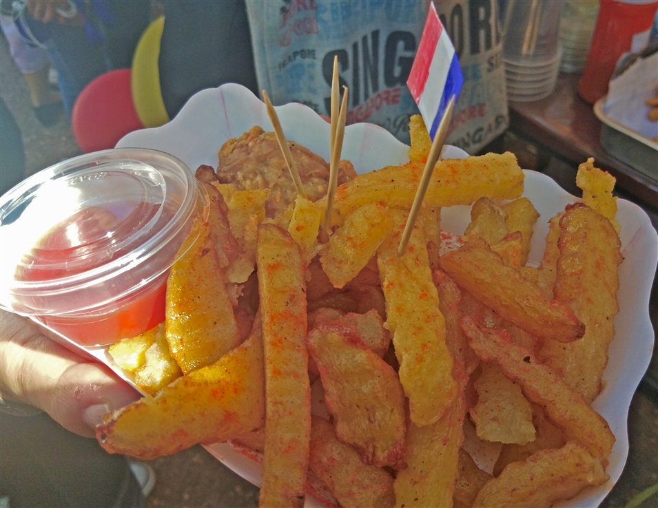 這是一場以各國美食為媒介的文化互動,文學(xué)院各系的學(xué)生在美食活動現(xiàn)場展示了日本、中國、老撾、韓國、法國歐、亞兩州不同國家的美食,比如中國的燒仙草、法國的薯?xiàng)l、老撾的肉串等,老撾國立大學(xué)的學(xué)生在暢享美食之際也在進(jìn)行飲食文化的分享與交流。
