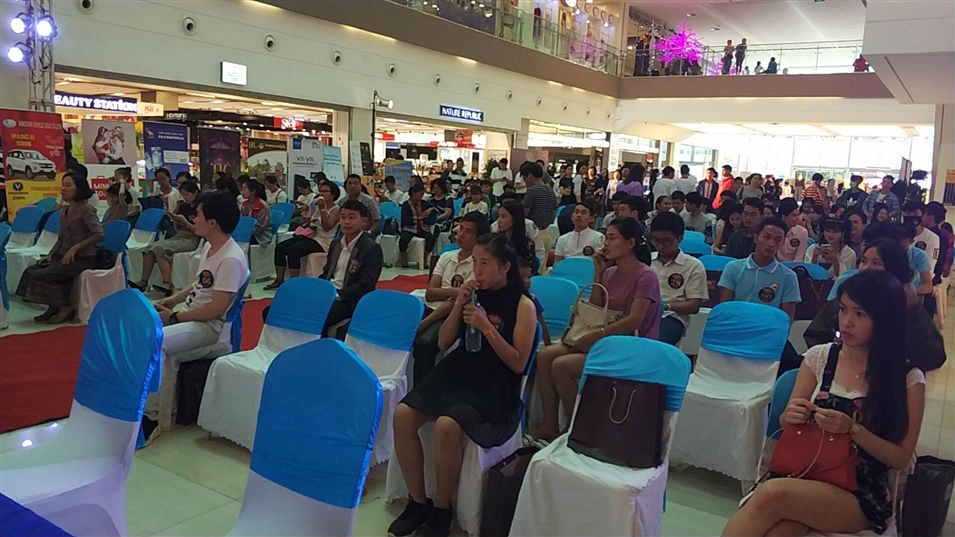 20日中午,萬象中心大廳坐滿了人,現(xiàn)場布置以藍(lán)白為主,看起來整潔典雅。主持人的開場白點燃現(xiàn)場觀眾的熱情,比賽正式拉開帷幕。