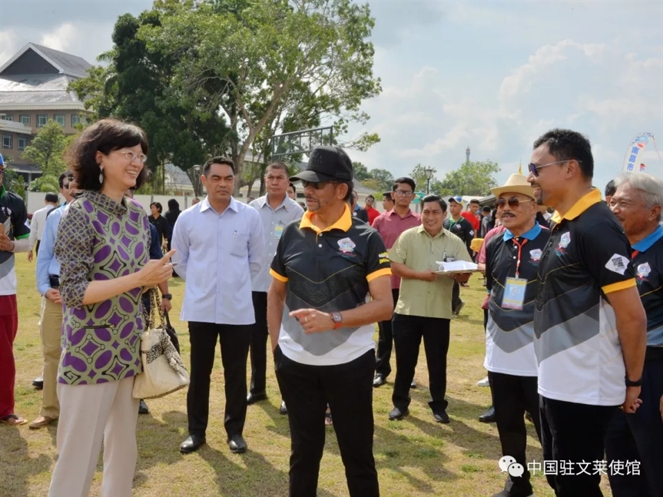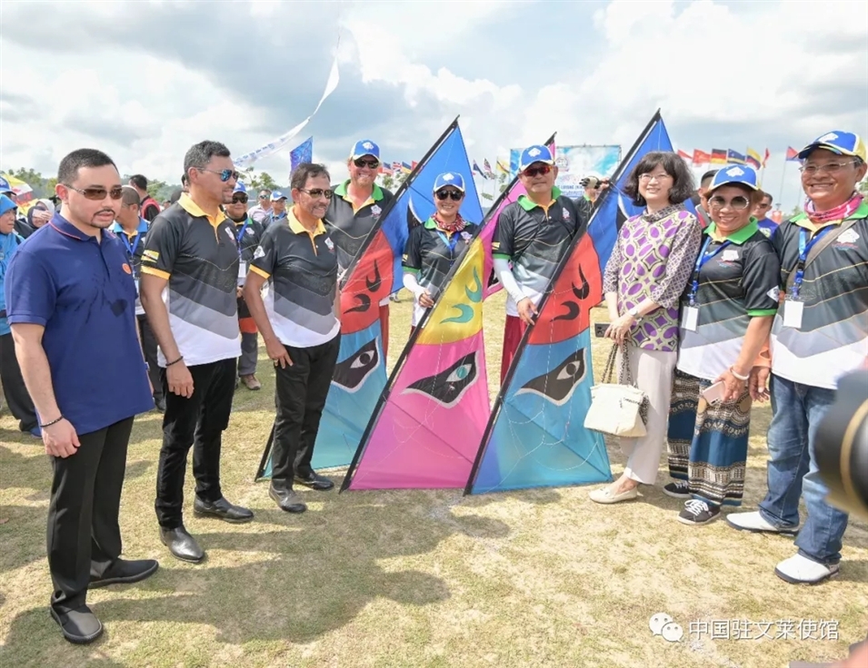 3月17日,于紅大使應(yīng)邀出席文萊首屆國(guó)際風(fēng)箏節(jié)開(kāi)幕式。于紅大使在開(kāi)幕式前看望中國(guó)選手,為他們加油鼓勁。于紅大使還陪同文萊蘇丹、王儲(chǔ)等王室成員和中國(guó)選手交流。